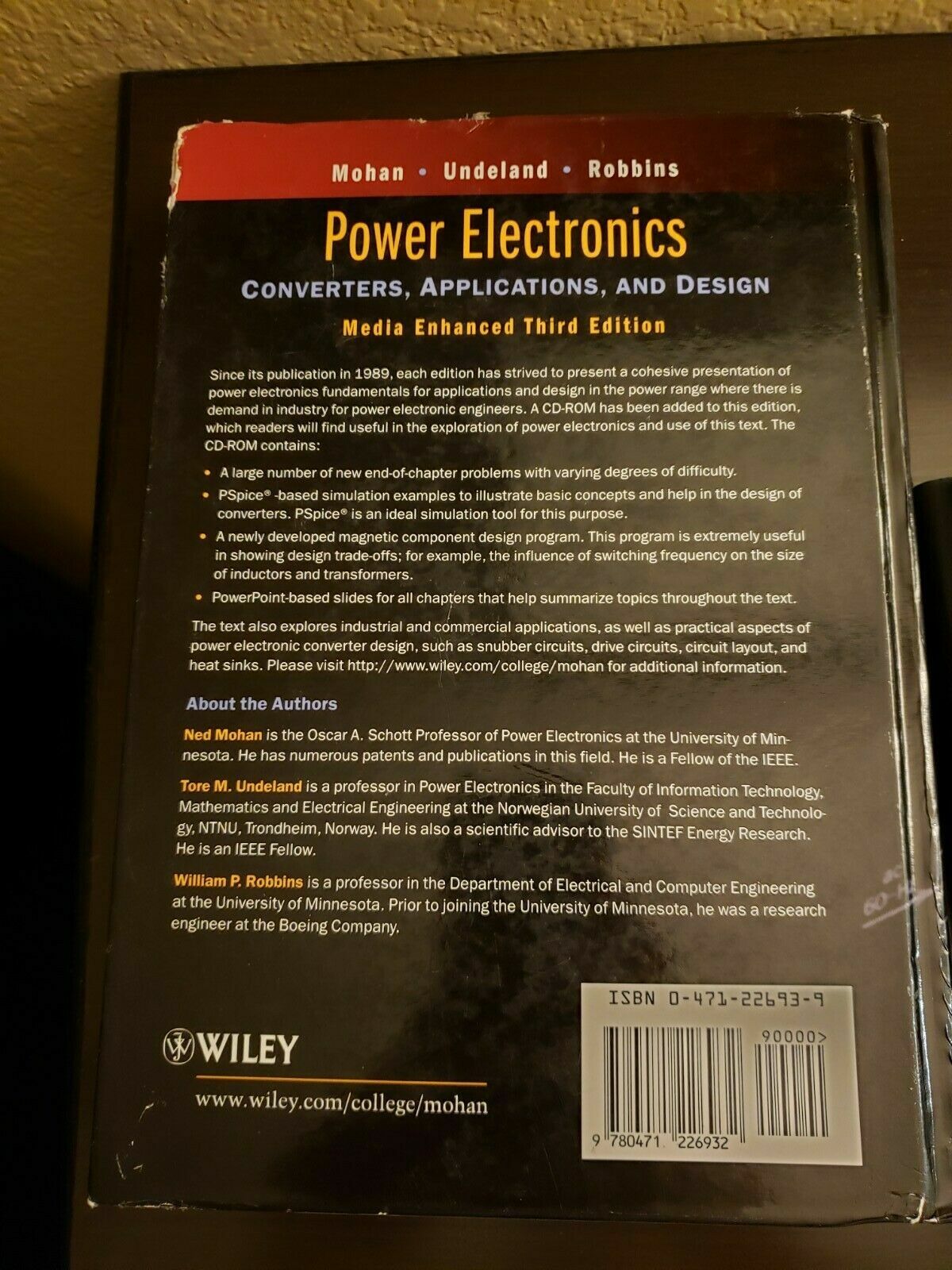 Published October 10th 2002 by Wiley first published July 26th 1989 More Details. Welcome to the Web site for Power Electronics. Converters Applications and Design By Ned Mohan Tore M.
